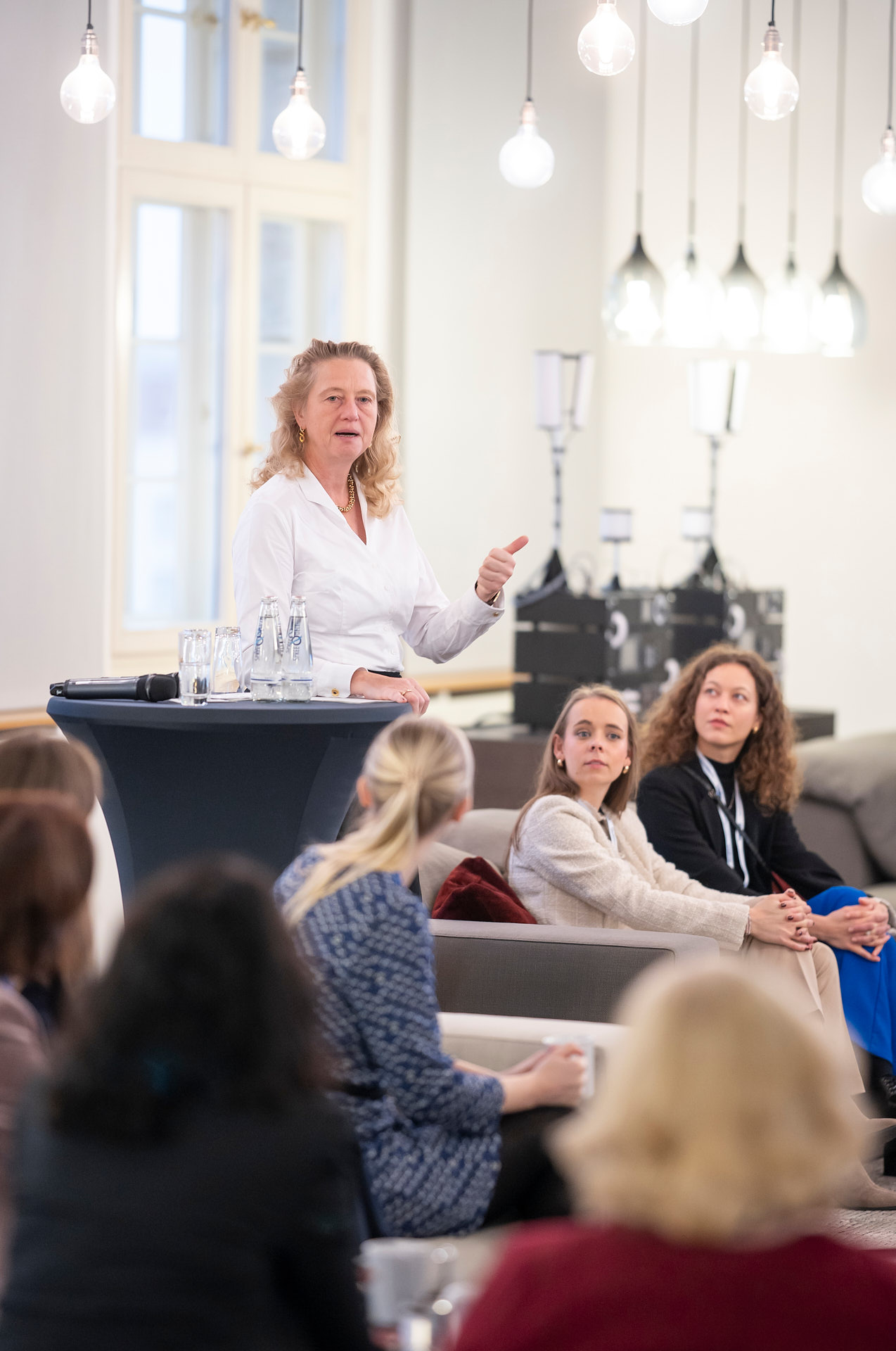 Im Anschluss gab Prof. Dr. Luise Hölscher, Staatssekretärin im Bundesministerium für Digitales und Staatsmodernisierung, wichtige Impulse zur Weiterentwicklung der deutschen Digitalpolitik. Elisabeth Winkelmeier-Becker MdB schloss die Vortragsrunde mit Einblicken zur aktuellen Rolle von Frauen in Führungspositionen und machte deutlich, dass bereits erreichte Fortschritte in diesem Thema mancherorts schon wieder rückläufig sind.
